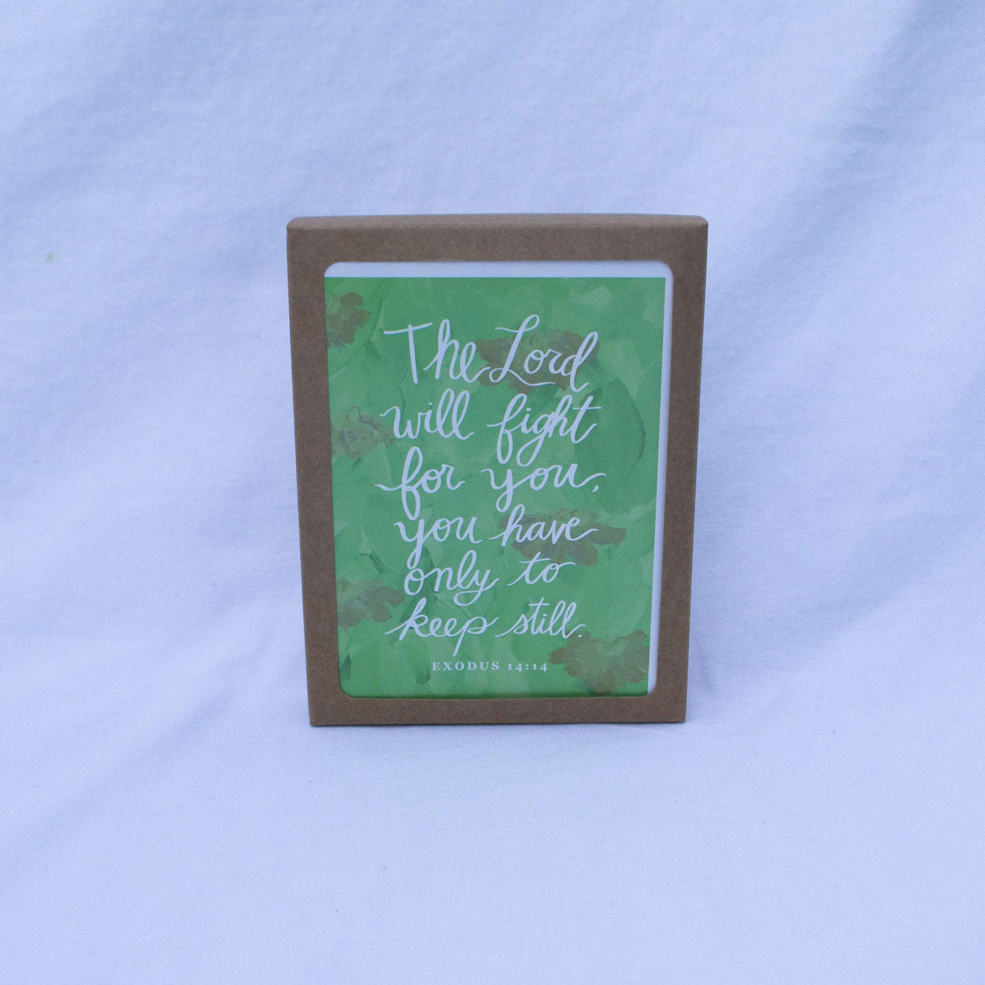 Show a friend the beauty of God's providence through this simple yet beautiful card! One of my favorite verses, Exodus 14:14 never fails to nourish in tough seasons while gently calling to mind the powerful, "fighting" love of God the Father.